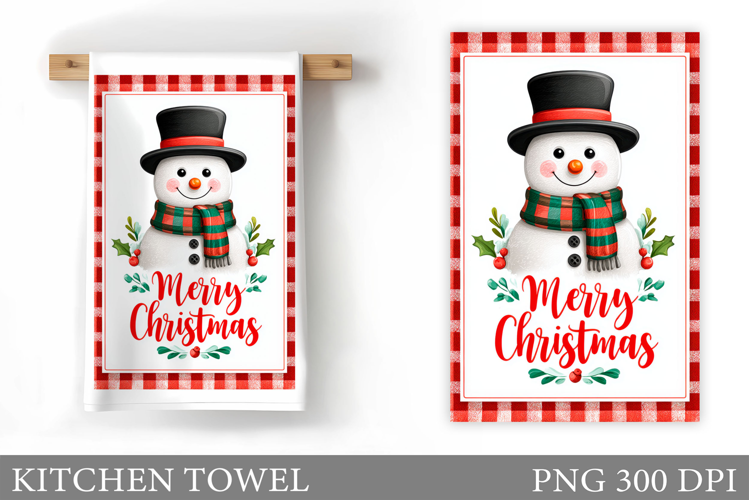 Snowman Kitchen Towel Design. Christmas Kitchen Towel example image 1