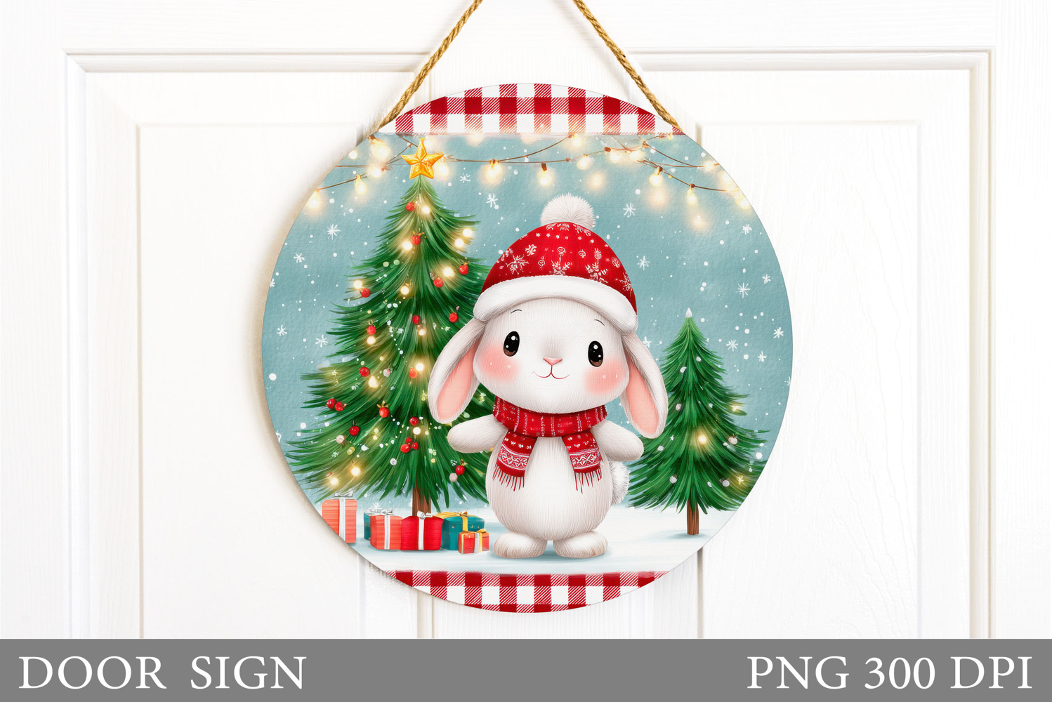 Christmas Bunny Door Sign. Christmas Door Sign Sublimation
