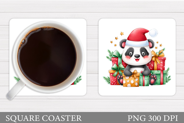 Christmas Panda Coaster. Christmas Coaster Sublimation example image 1