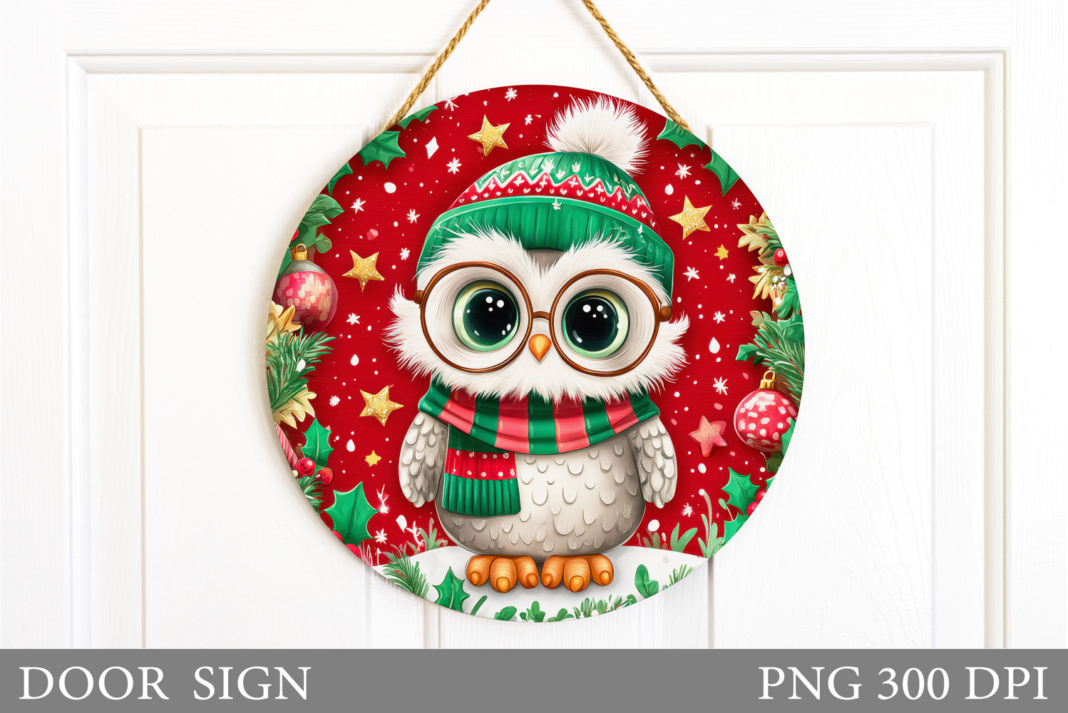 Christmas Owl Door Sign. Christmas Door Sign Sublimation
