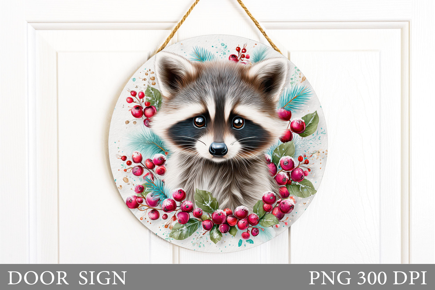 Christmas Raccoon Door Sign. Christmas Door Sign Sublimation