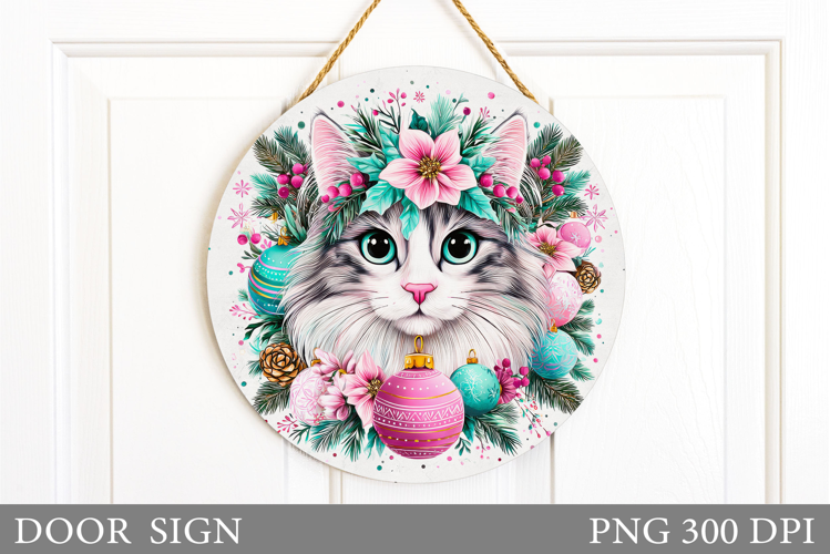 Christmas Cat Door Sign. Christmas Door Sign Design