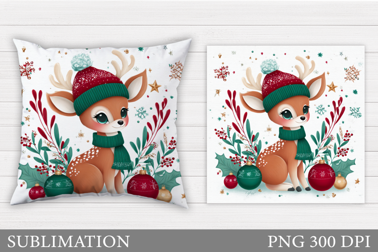 Christmas Deer Pillow Design. Christmas Pillow Sublimation example image 1
