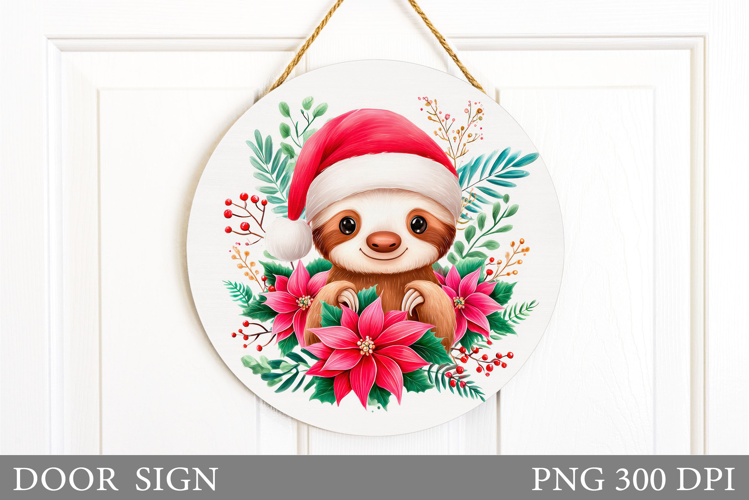 Christmas Sloth Door Sign. Christmas Door Sign Sublimation example image 1