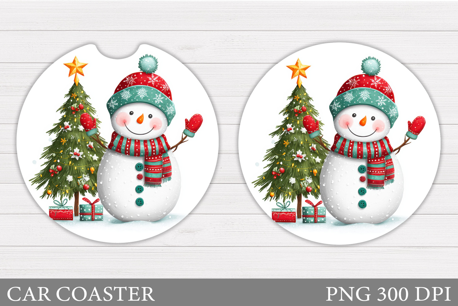 Cute Snowman Car Coaster. Christmas Car Coaster Sublimation example image 1