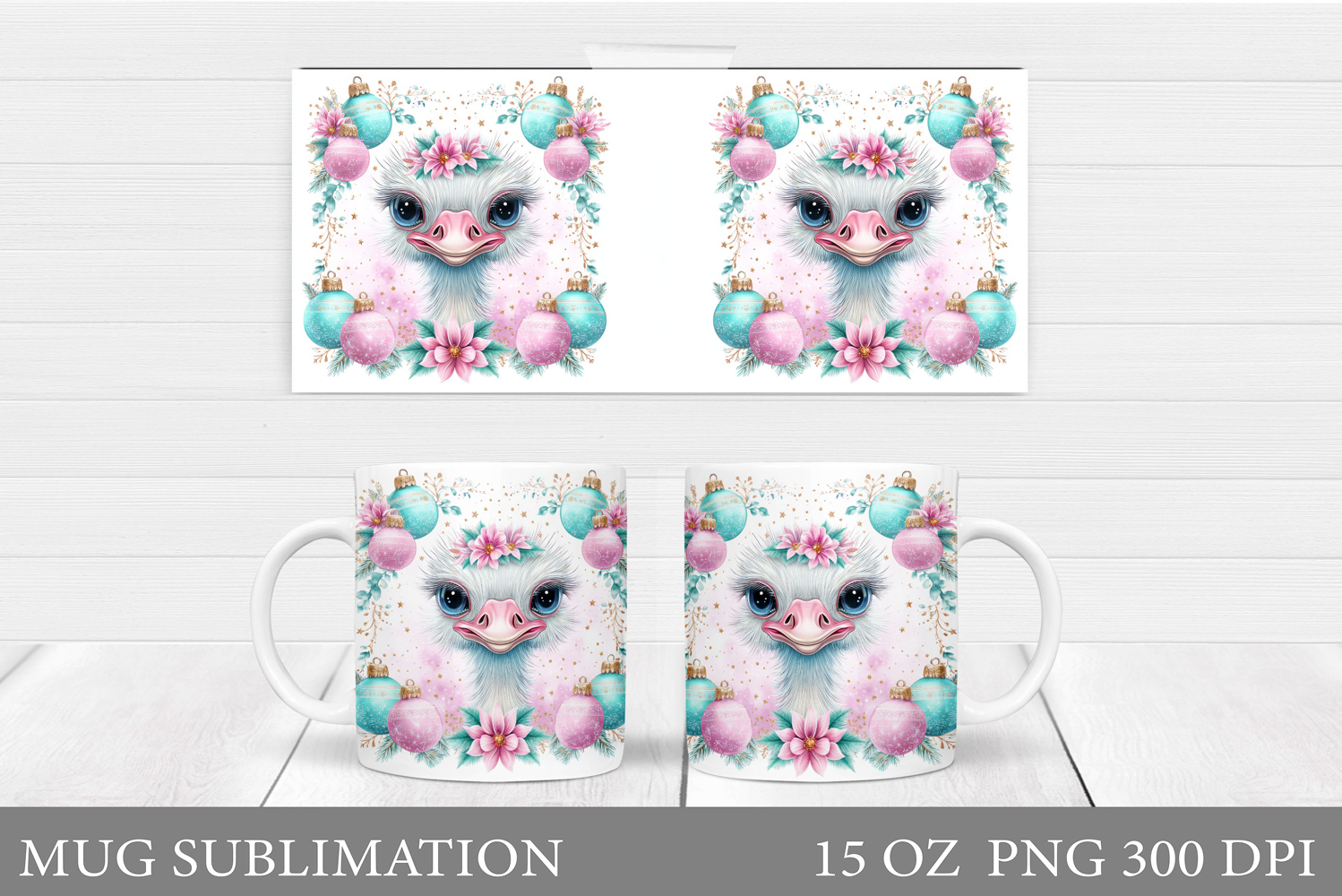 Christmas Ostrich Mug Design. Christmas Mug Sublimation