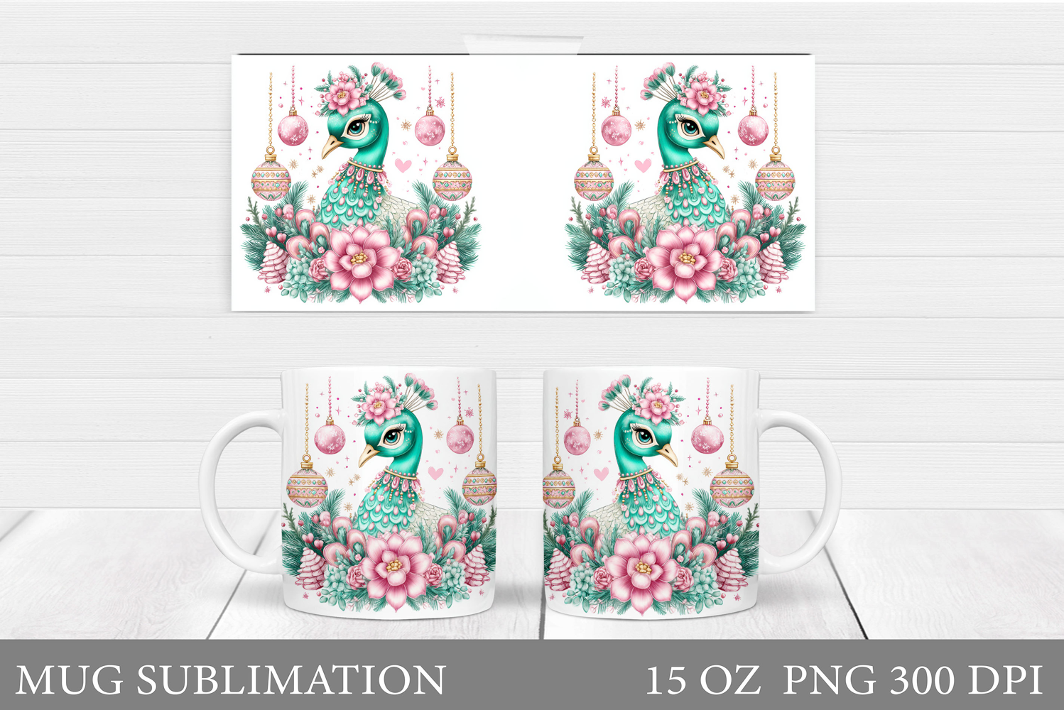 Christmas Peacock Mug Design. Christmas Mug Sublimation