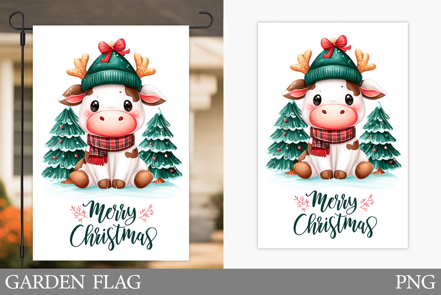 Christmas Cow Garden Flag. Christmas Garden Flag Sublimation example image 1