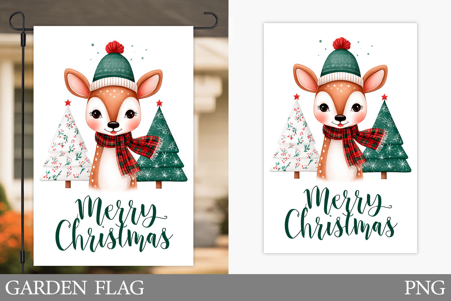 Cute Deer Garden Flag. Christmas Garden Flag Sublimation example image 1