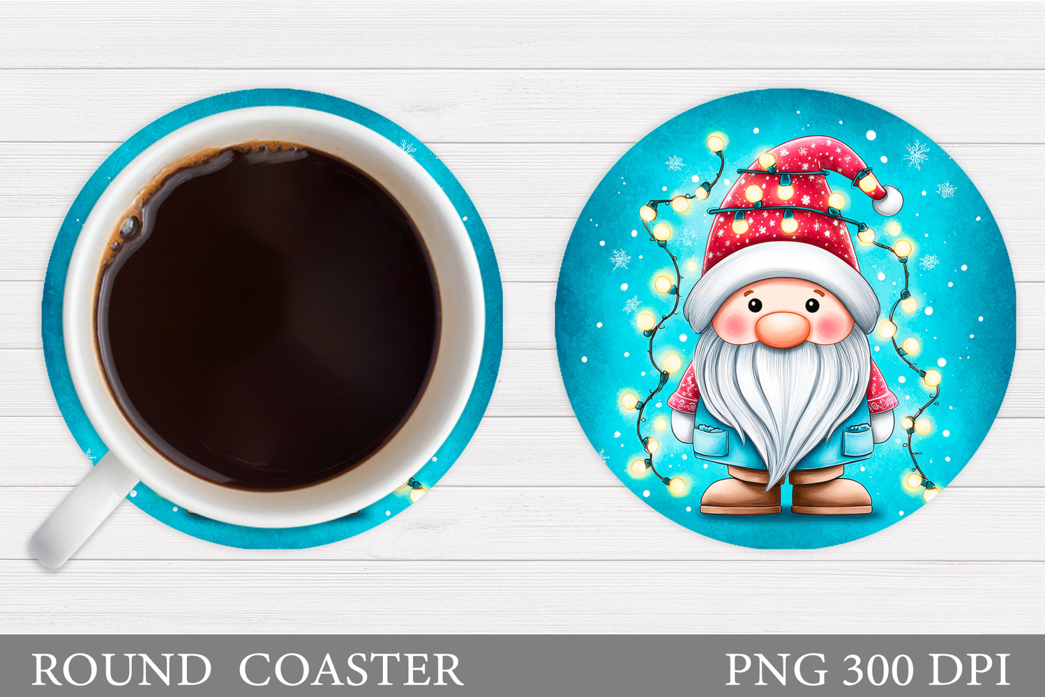 Christmas Gnome Coaster. Christmas Round Coaster Design