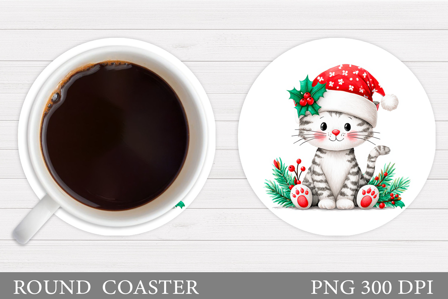 Similar Design Products to Christmas Cat Coaster Design. Christmas Round Coaster