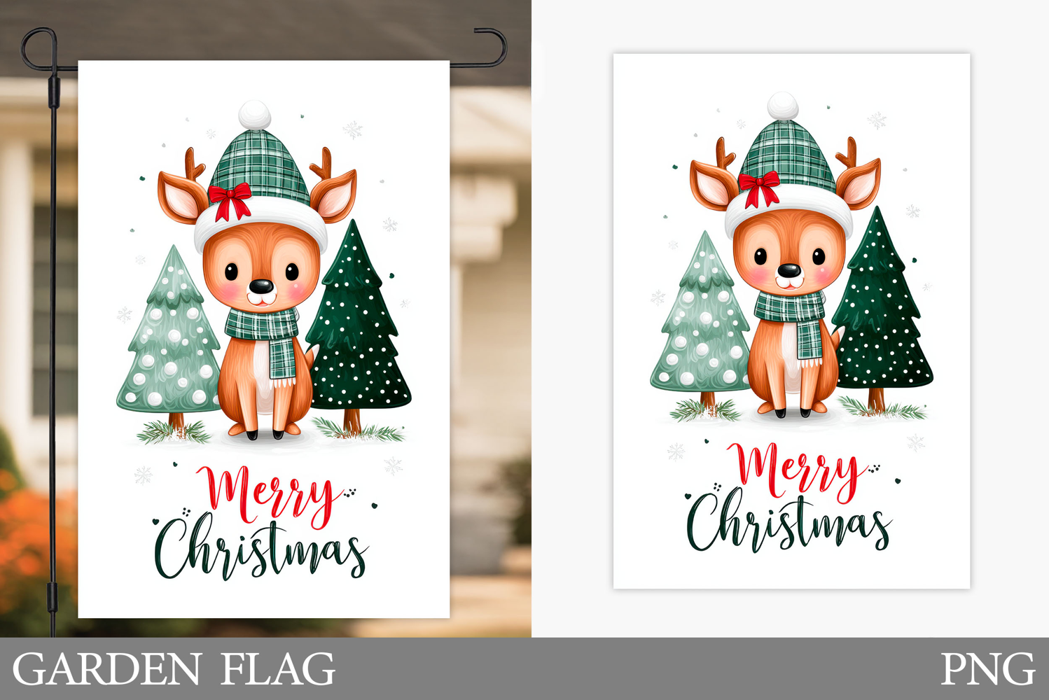 Cute Deer Garden Flag. Christmas Garden Flag Sublimation example image 1