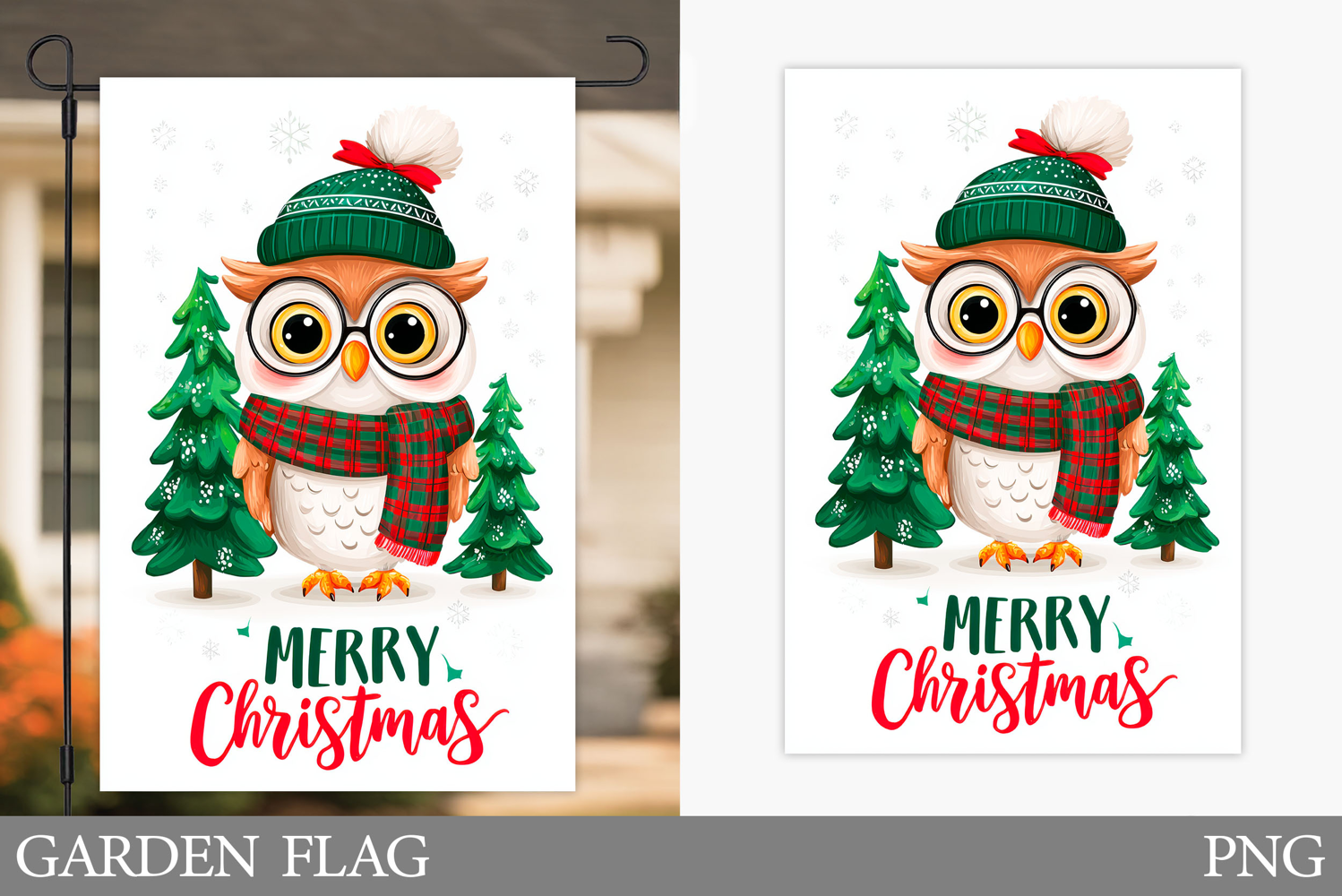 Christmas Owl Garden Flag. Christmas Garden Flag Sublimation example image 1