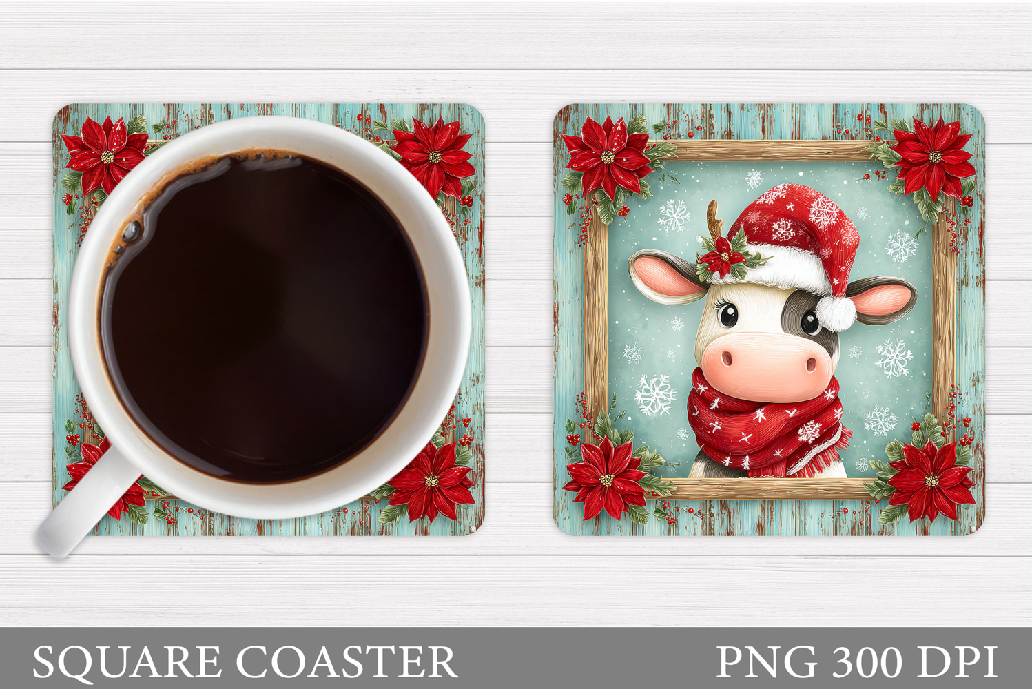 Christmas Cow Coaster. Christmas Cow Coaster Sublimation example image 1