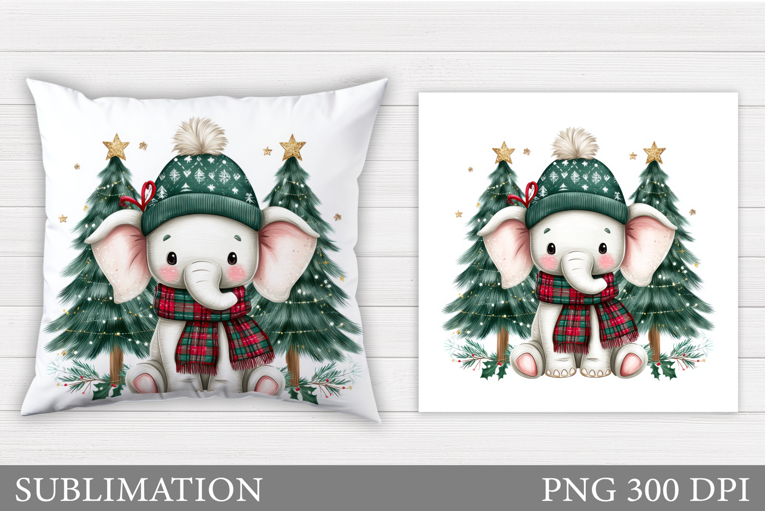 Christmas Elephant Pillow. Christmas Pillow Sublimation example image 1