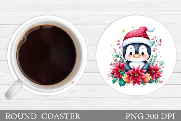 Christmas Penguin Coaster. Christmas Round Coaster Design