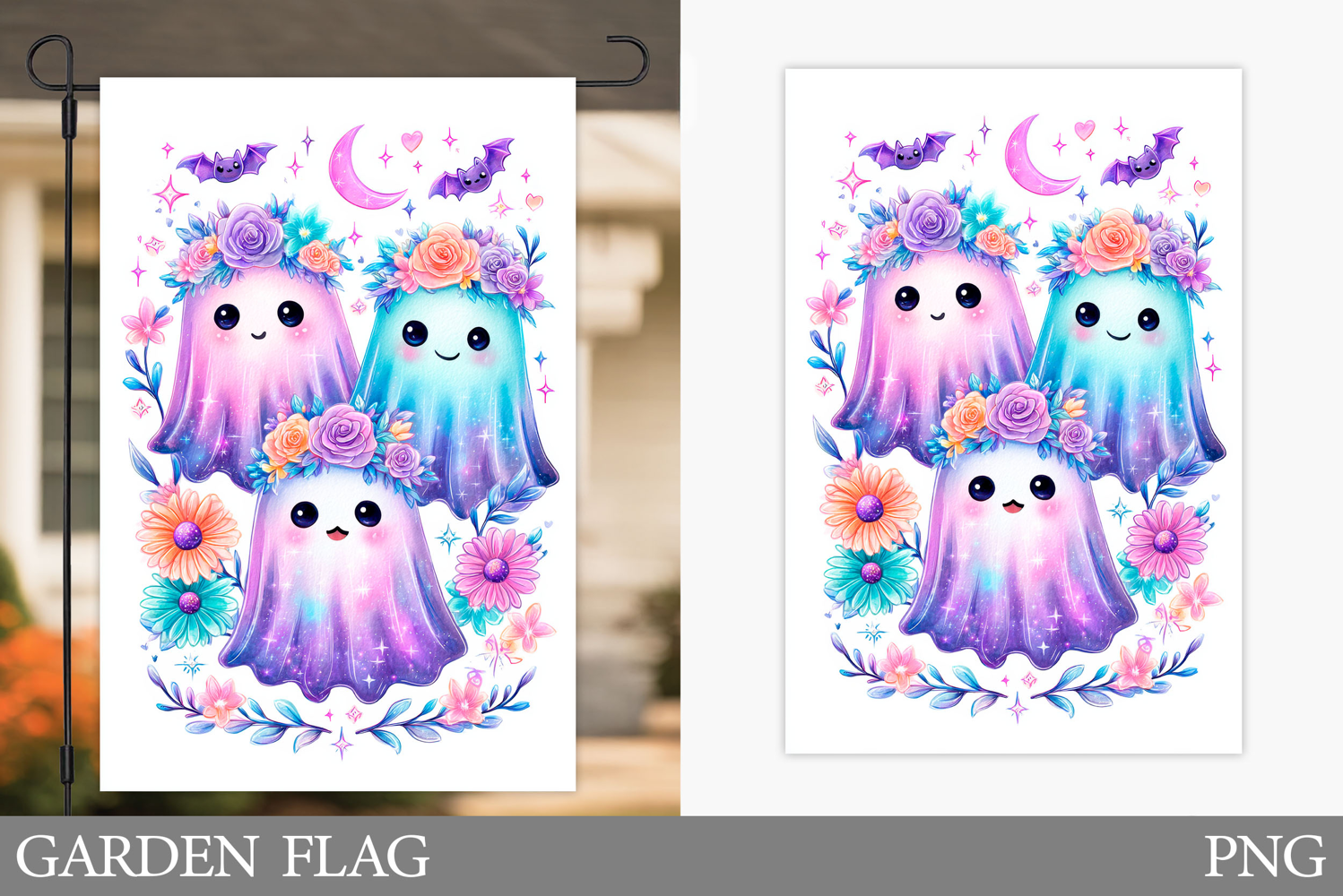 Cute Ghost Garden Flag. Cute Halloween Garden Flag Design