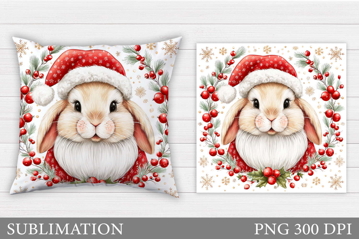Christmas Bunny Pillow Design. Christmas Pillow Sublimation