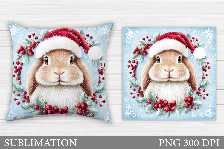 Christmas Bunny Pillow Design. Christmas Pillow Sublimation example image 1
