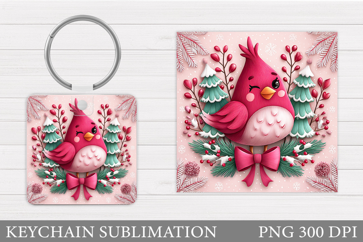 Christmas Bird Keychain. Christmas Keychain Sublimation example image 1