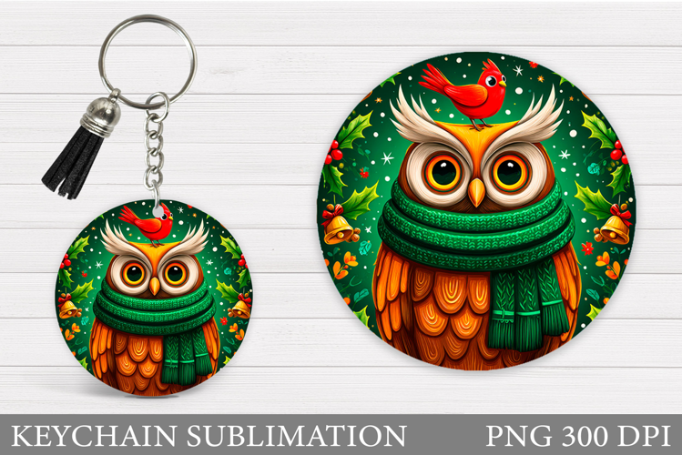 Christmas Owl Keychain. Christmas Keychain Sublimation