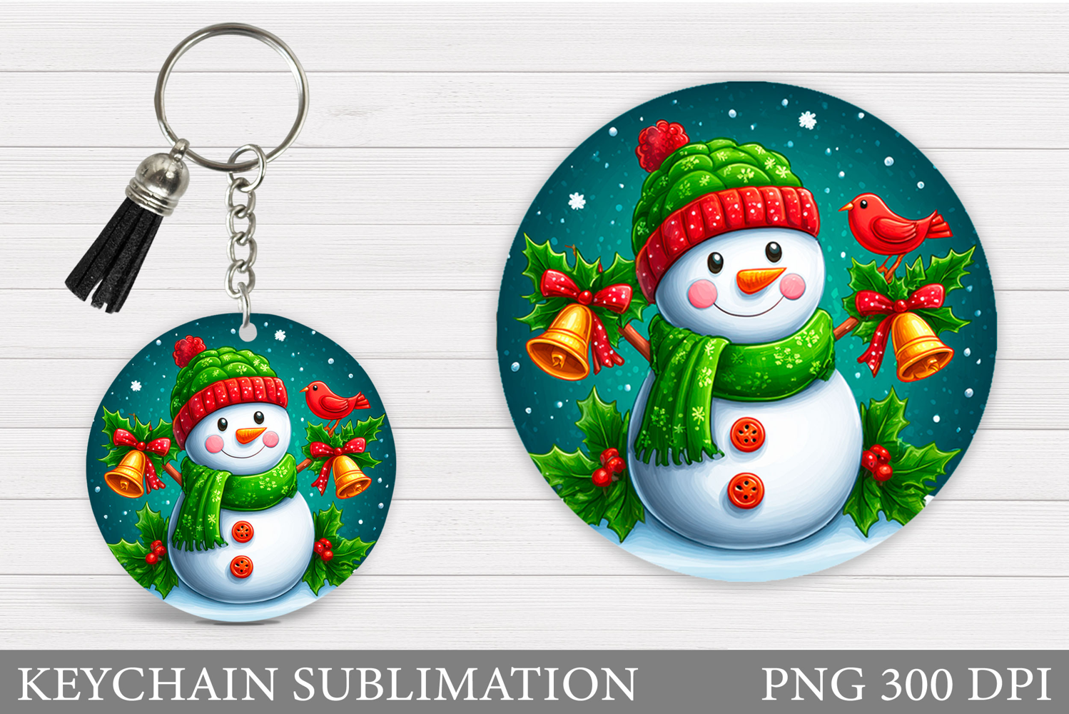 Cute Snowman Keychain Sublimation. Christmas Keychain Design example image 1
