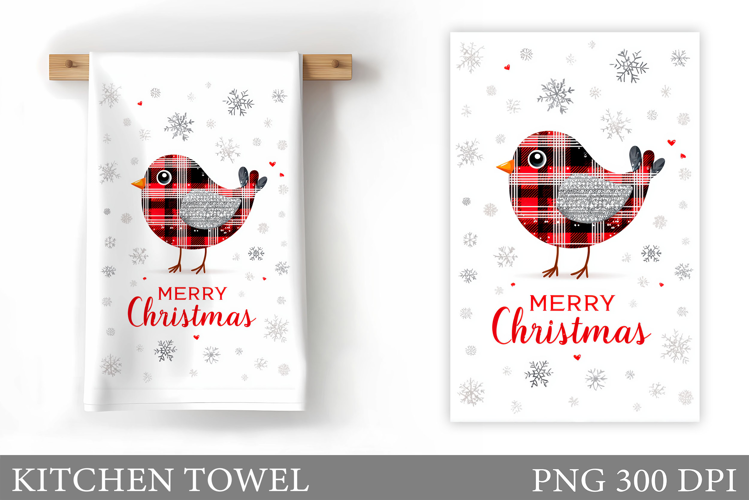 Christmas Bird Kitchen Towel. Christmas Kitchen Towel Design example image 1