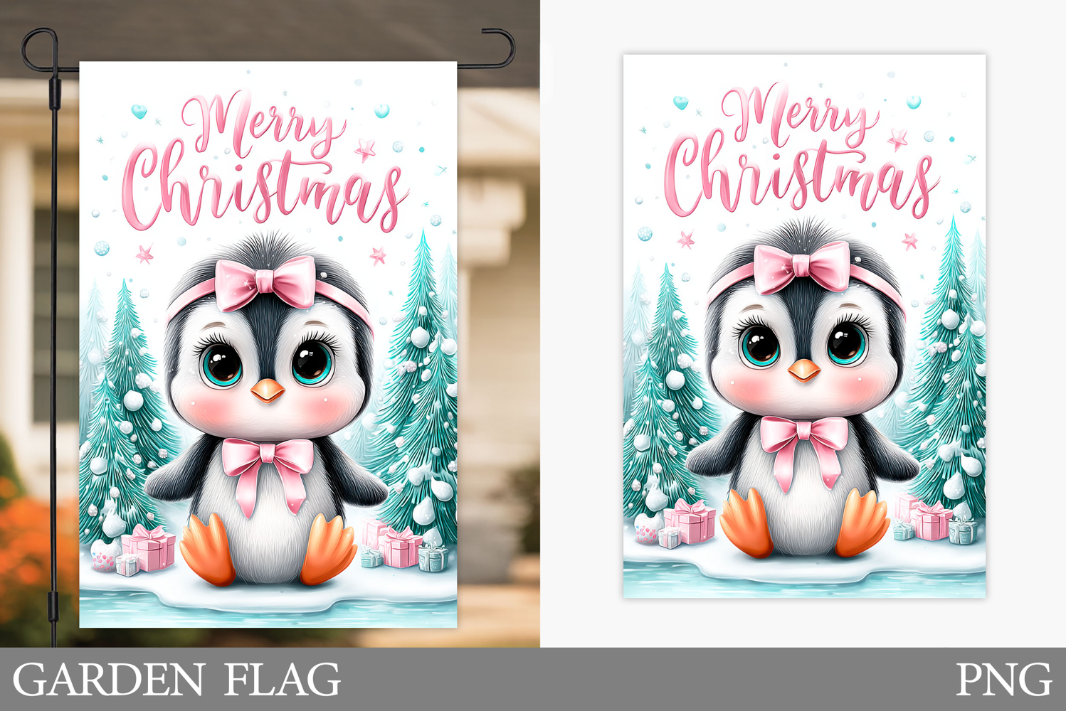 Penguin Garden Flag. Christmas Garden Flag Sublimation example image 1