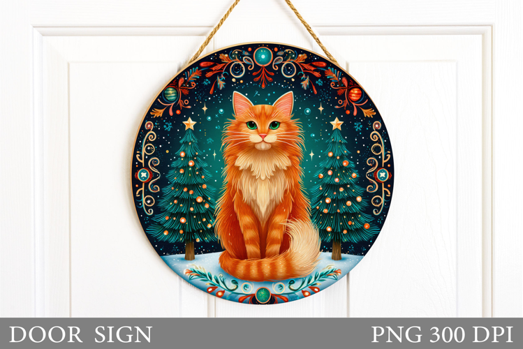 Christmas Cat Door Sign. Christmas Door Sign Sublimation example image 1