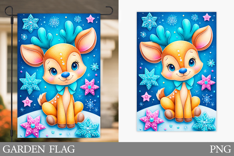 Cute Deer Garden Flag. Christmas Garden Flag Sublimation example image 1