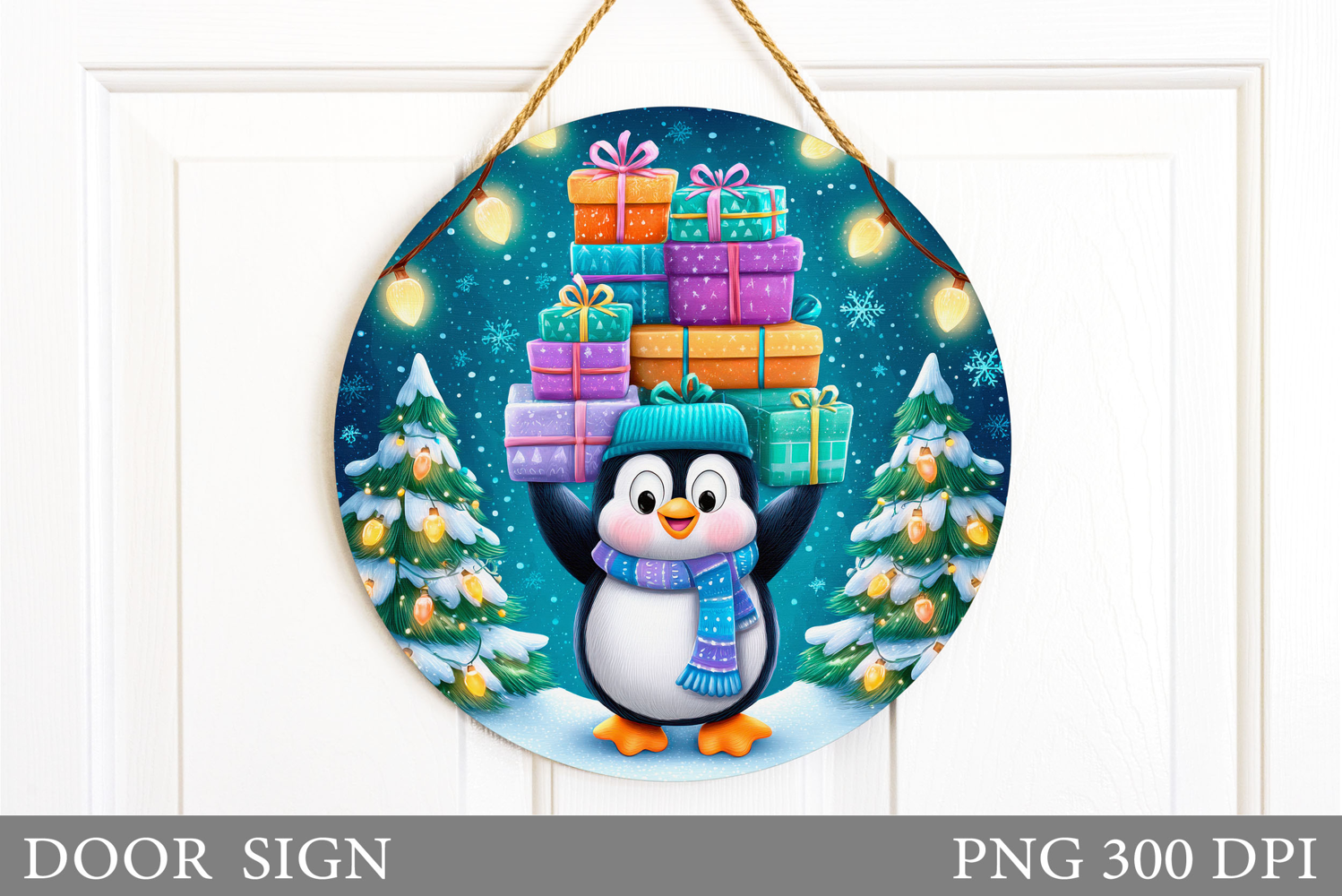 Christmas Penguin Door Sign. Christmas Door Sign Design
