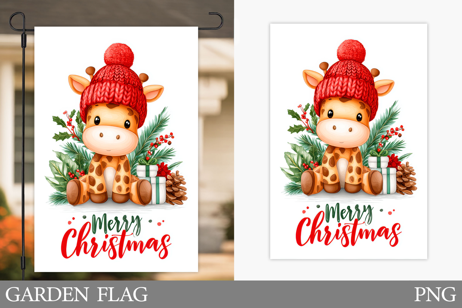 Christmas Giraffe Garden Flag. Christmas Garden Flag Design example image 1