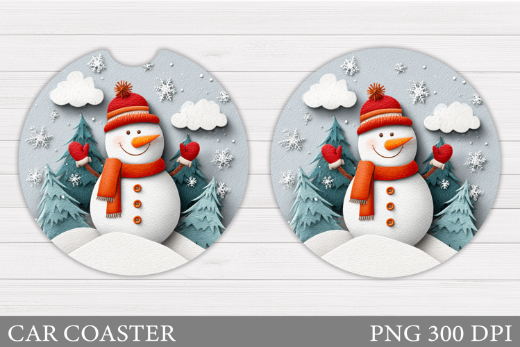 Cute Snowman Car Coaster. Christmas Car Coaster Sublimation