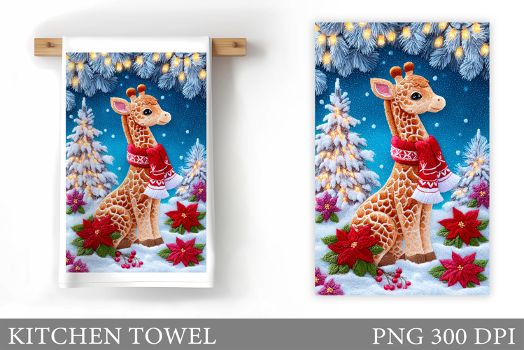 Cute Giraffe Kitchen Towel. Christmas Kitchen Towel Design example image 1