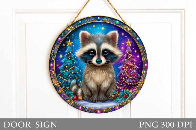Christmas Raccoon Door Sign. Christmas Door Sign Sublimation