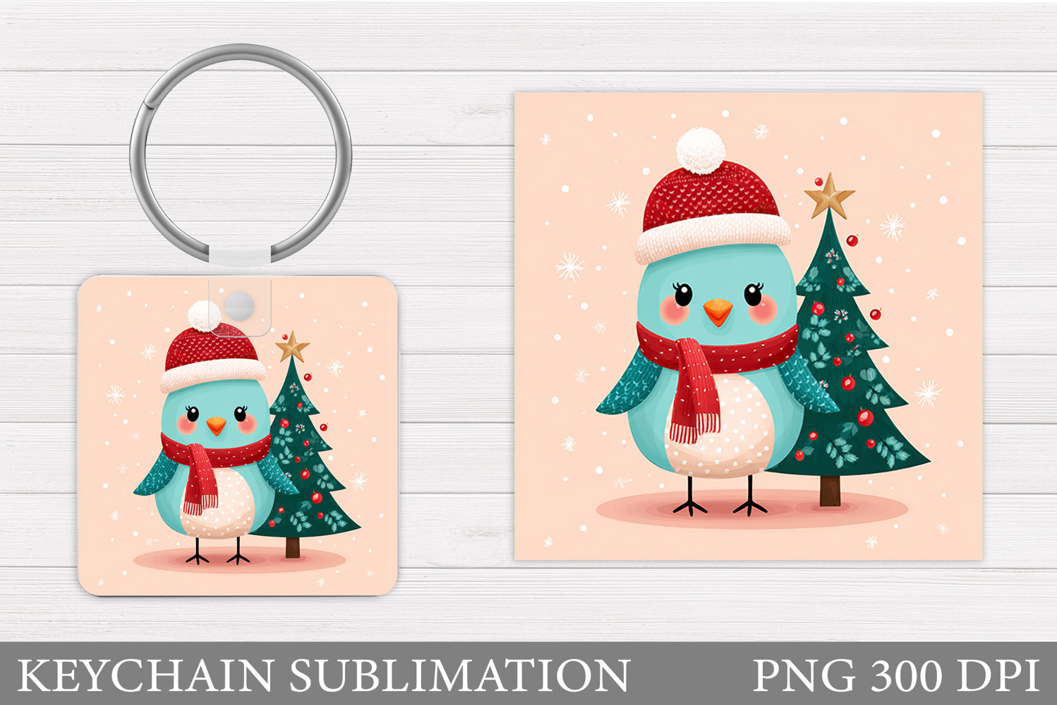Christmas Bird Keychain. Christmas Keychain Sublimation example image 1