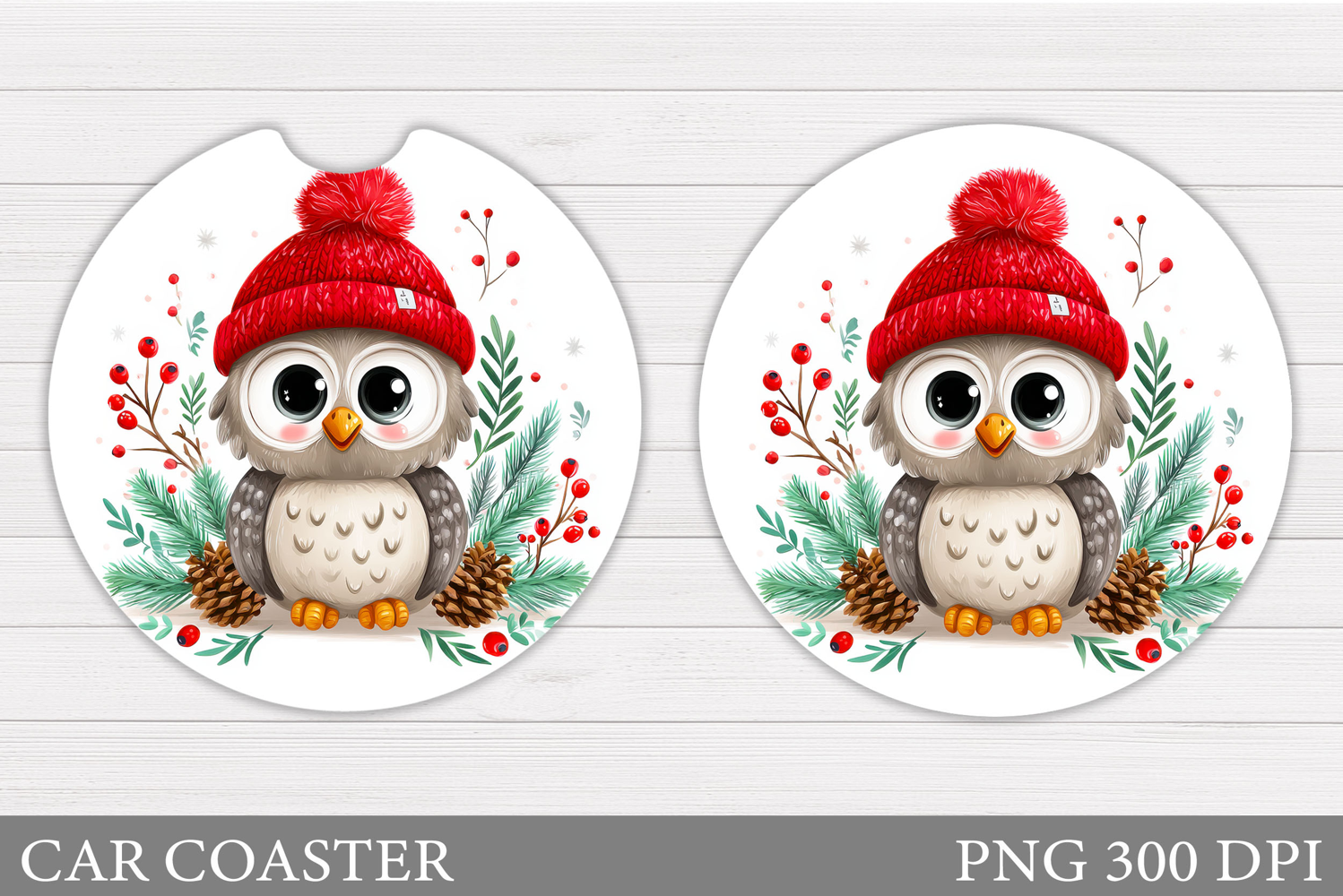 Christmas Owl Car Coaster. Christmas Car Coaster Sublimation