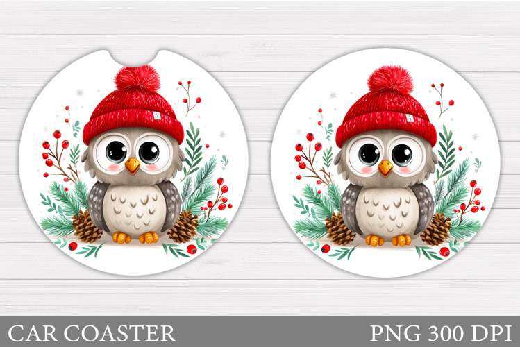 Christmas Owl Car Coaster. Christmas Car Coaster Design example image 1