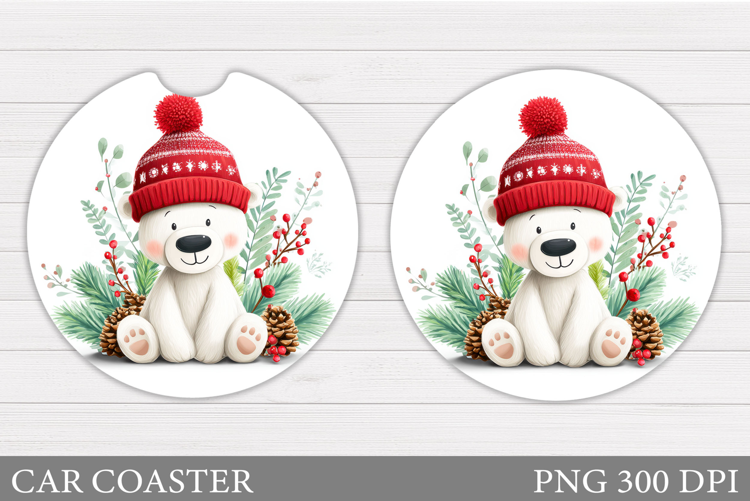 Polar Bear Car Coaster. Christmas Car Coaster Design
