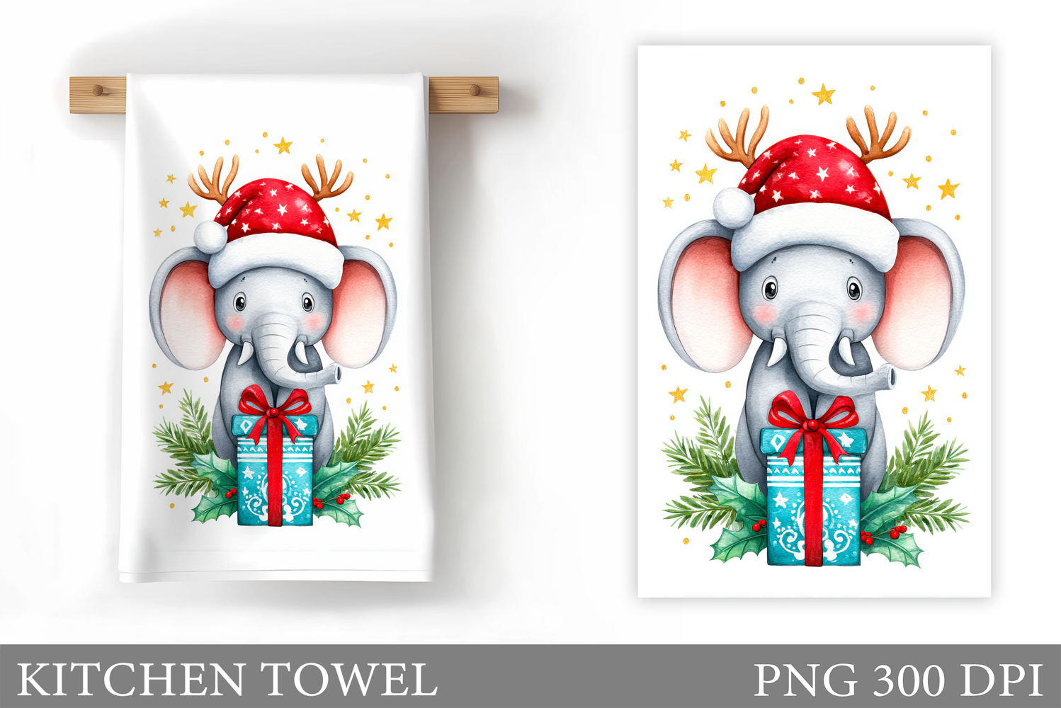 Cute Elephant Kitchen Towel. Christmas Kitchen Towel Design example image 1