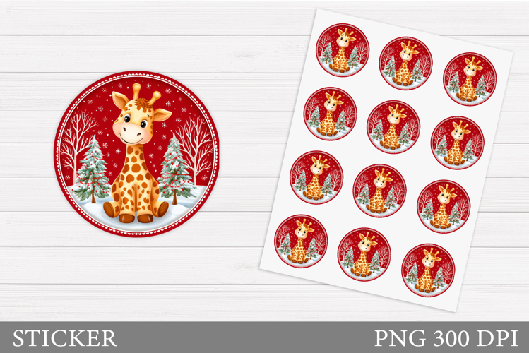 Cute Giraffe Sticker Design.Christmas Sticker Printable example image 1