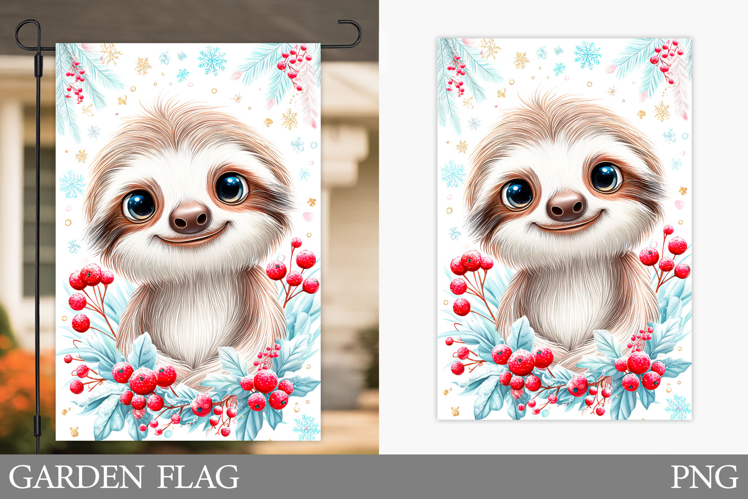 Christmas Sloth Garden Flag. Christmas Garden Flag Design example image 1