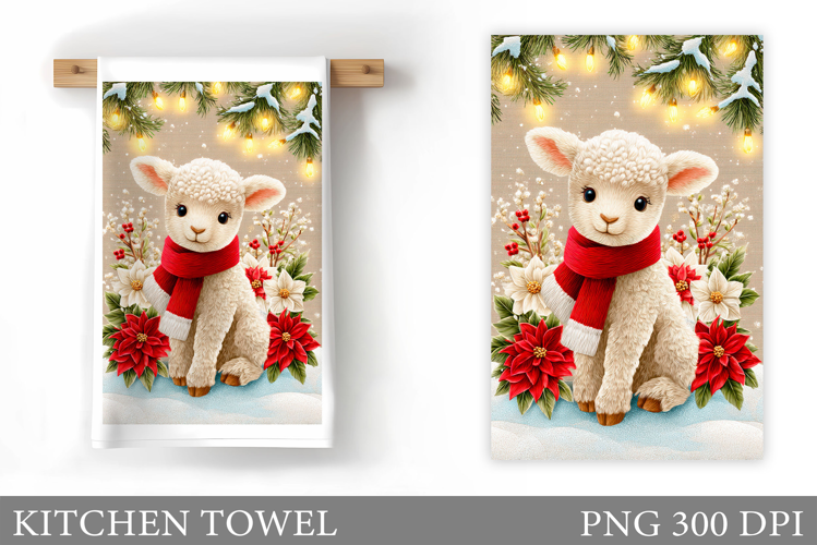 Christmas Lamb Kitchen Towel. Christmas Kitchen Towel Design example image 1
