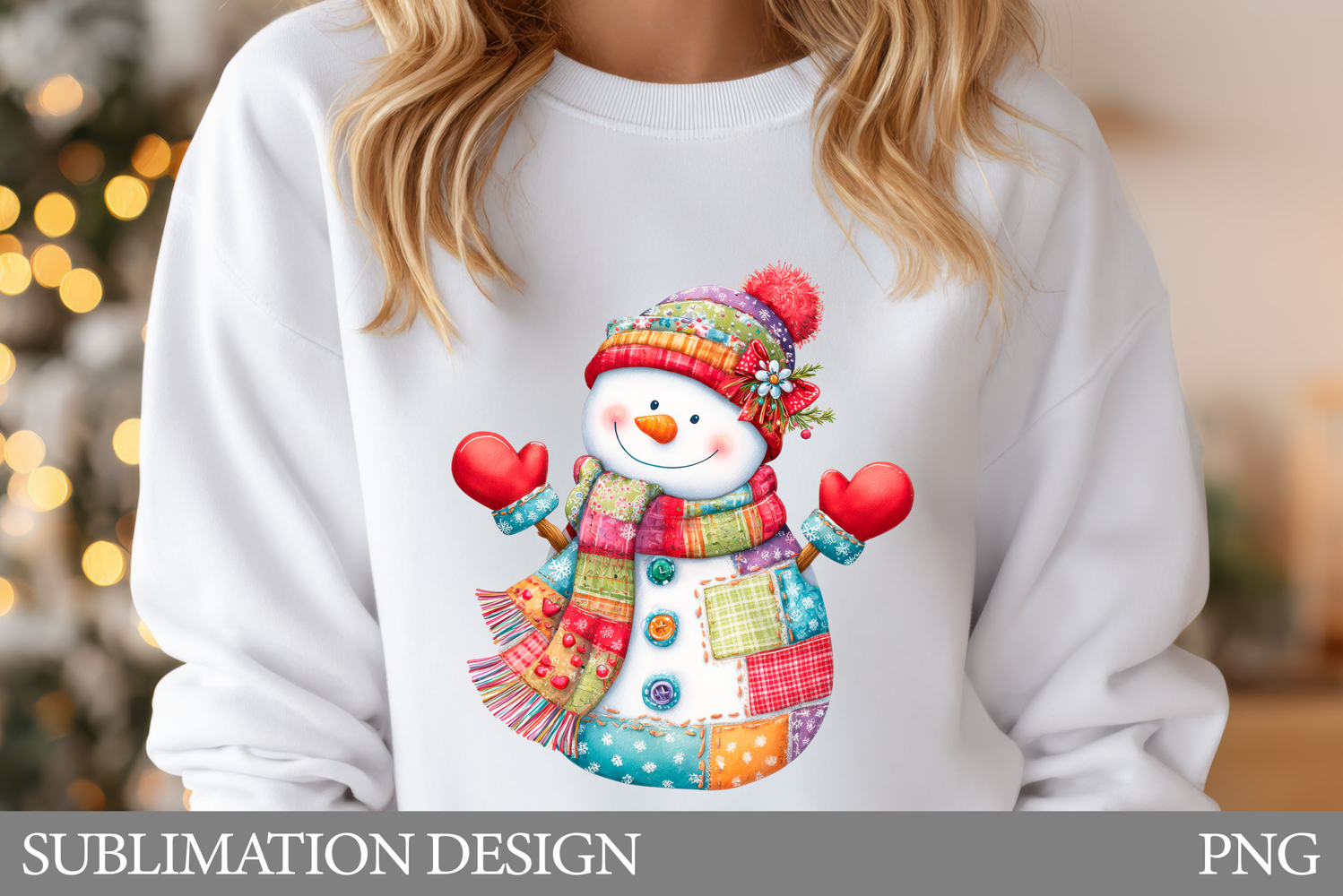Patchwork Snowman T-Shirt. Patchwork Snowman Sublimation example image 1