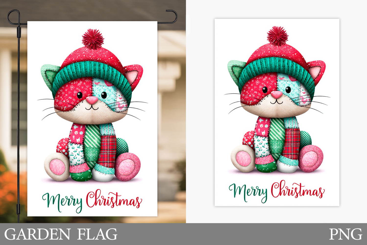 Patchwork Cat Garden Flag. Christmas Garden Flag Design example image 1