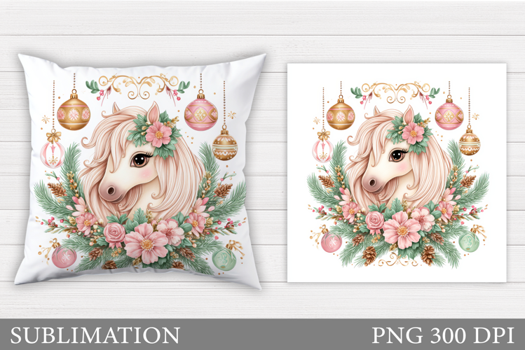 Christmas Horse Pillow Design. Christmas Pillow Sublimation example image 1