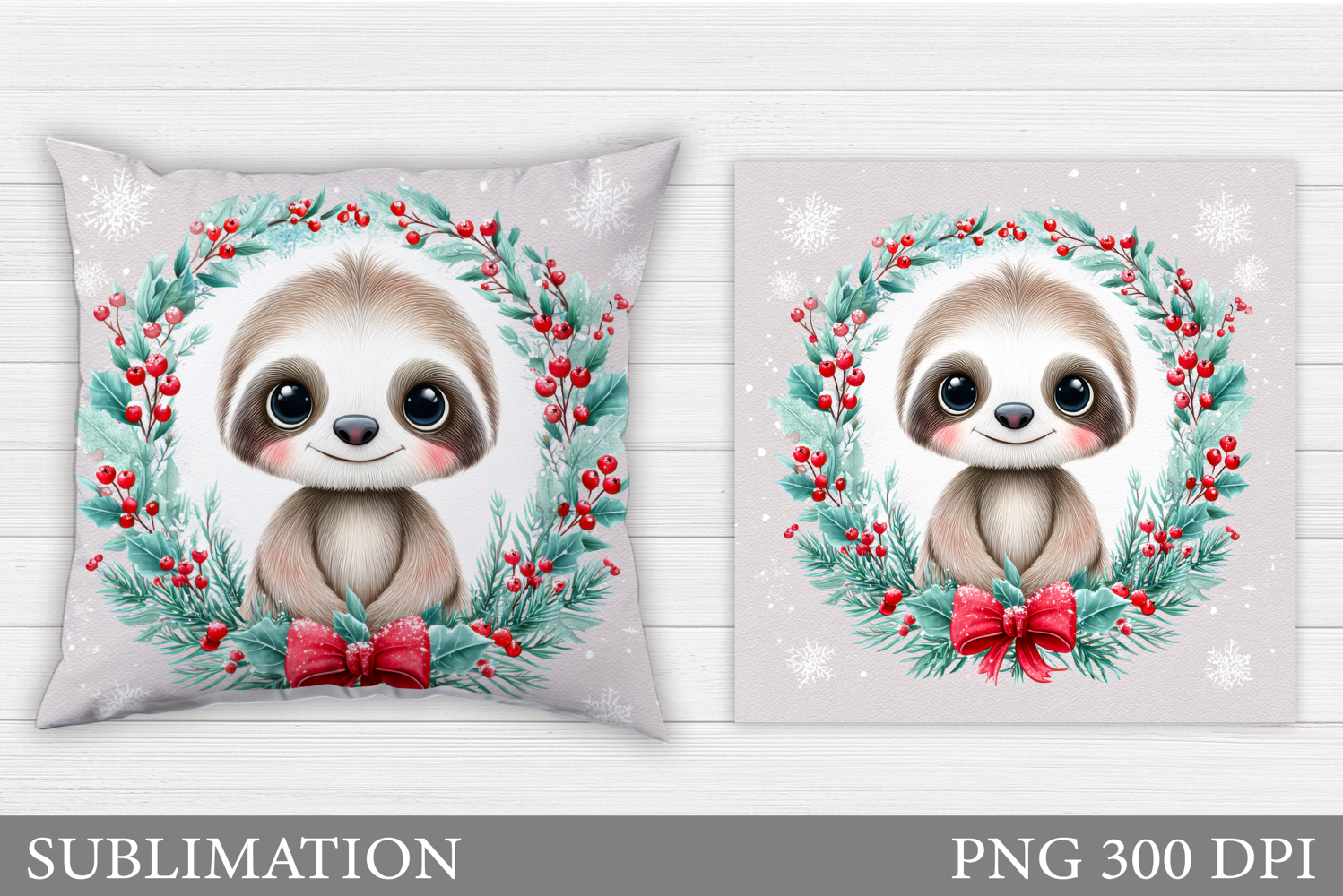 Christmas Sloth Pillow Design. Christmas Pillow Sublimation
