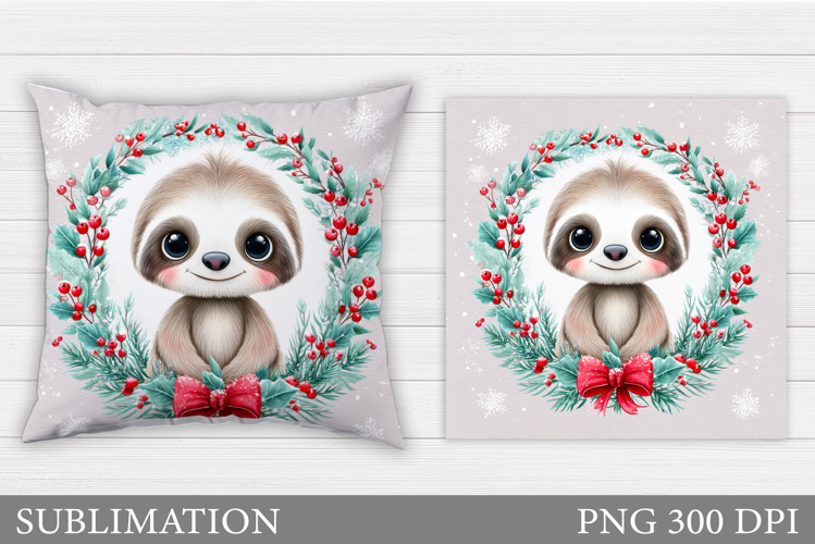Christmas Sloth Pillow Design. Christmas Pillow Sublimation example image 1