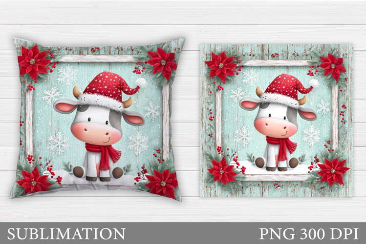 Christmas Cow Pillow Design. Christmas Pillow Sublimation example image 1