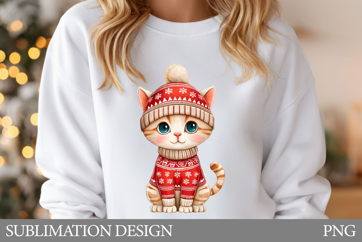 Christmas Cat Sublimation. Christmas Cat T-Shirt Design